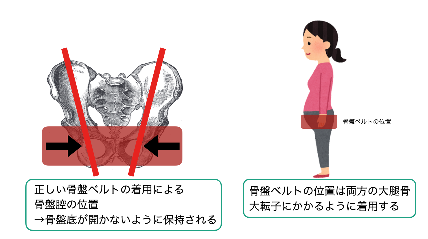 1.産前は赤ちゃんと羊水の重みを支えるため、産後は脆弱化した骨盤帯を保護するため。